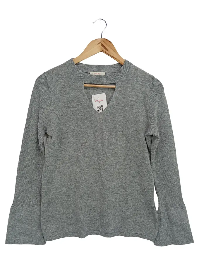 Damen Pullover Gr. 32/XS Grau Klassisch Elegant Cut-Out Langarm