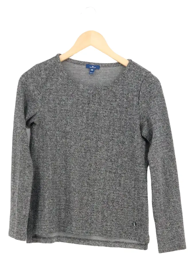 Damen Pullover Gr. 34/XS Grau Casual Fischgrätenmuster Langarm