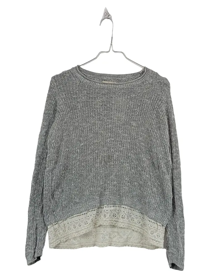 Damen Pullover Gr. 34/XS Grau Strickpullover Spitze Baumwolle Casual