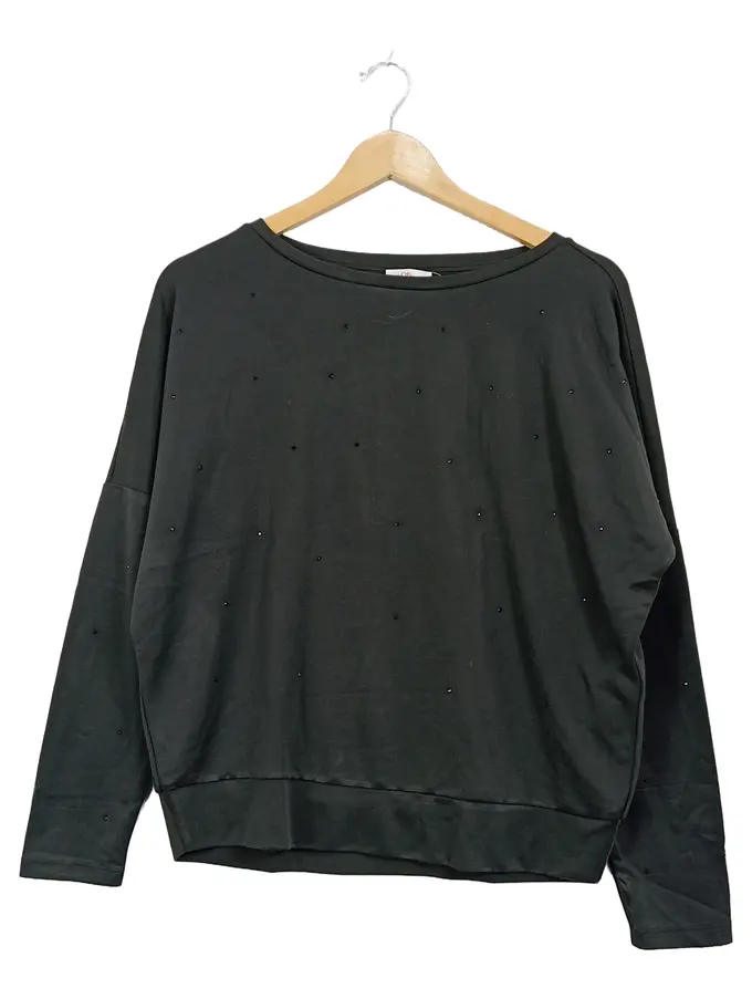Damen Pullover Gr. 34/XS Grün Langarm Strassbesatz Modal
