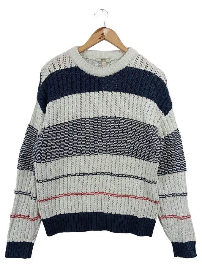 Damen Pullover Gr. 34/XS Mehrfarbig Gestreift Lochmuster Baumwolle