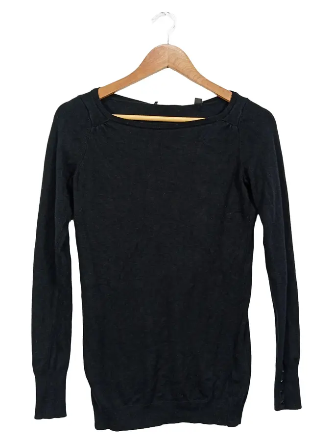 Damen Pullover Gr. 34/XS Schwarz Basic Langarm Viskose