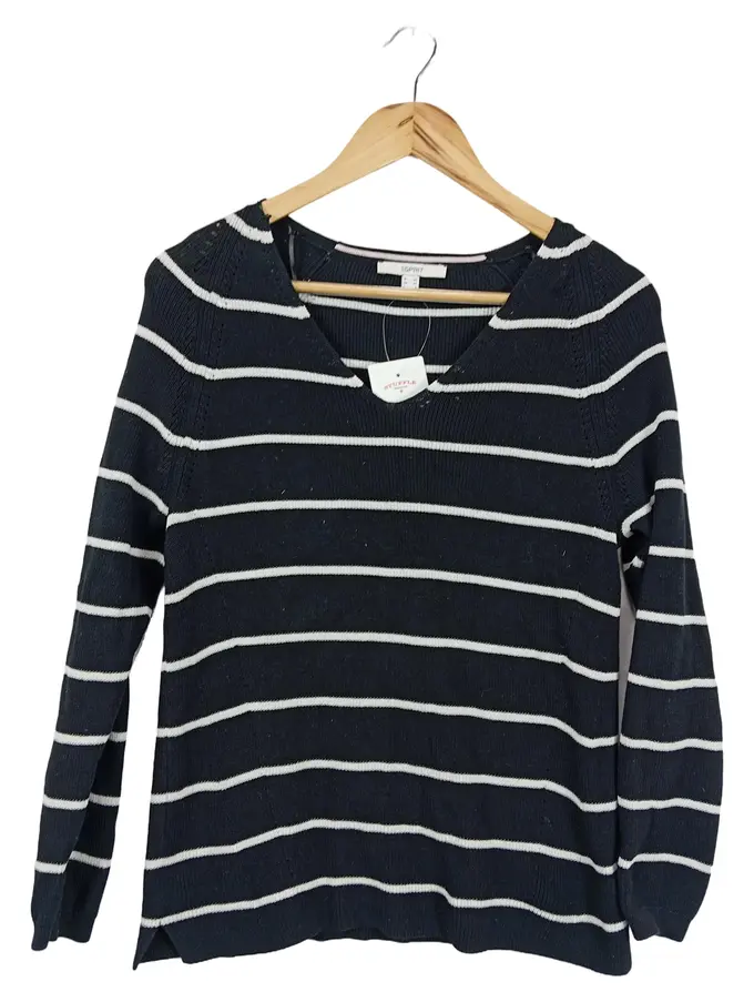 Damen Pullover Gr. 34/XS Schwarz Gestreift Klassisch Casual