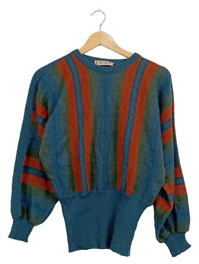 Damen Pullover Gr. 36 Mohair Gestreift Petrol Vintage Retro
