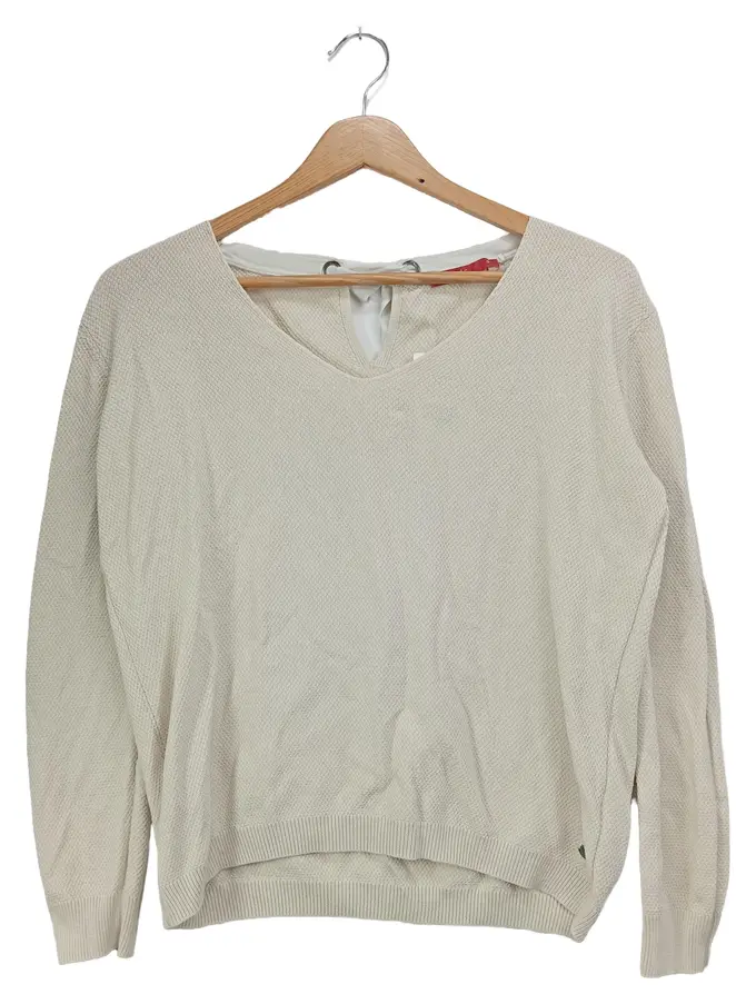 Damen Pullover Gr. 36/S Beige Strukturmuster Schleife Langarm