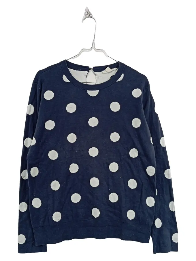 Damen Pullover Gr. 36/S Blau Punkte 100% Baumwolle Langarm Casual