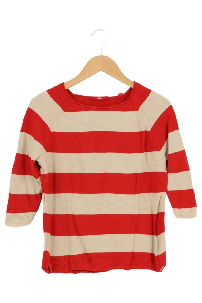 Damen Pullover Gr. 36/S Gestreift Rot Beige 3/4-Arm