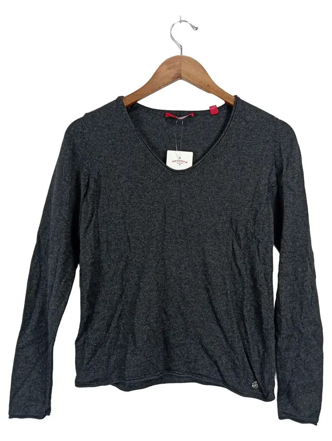 Damen Pullover Gr. 36/S Grau Casual V-Ausschnitt Langarm