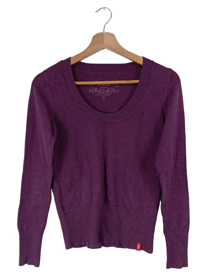 Damen Pullover Gr. 36/S Lila Basic Langarm Rundhals Casual
