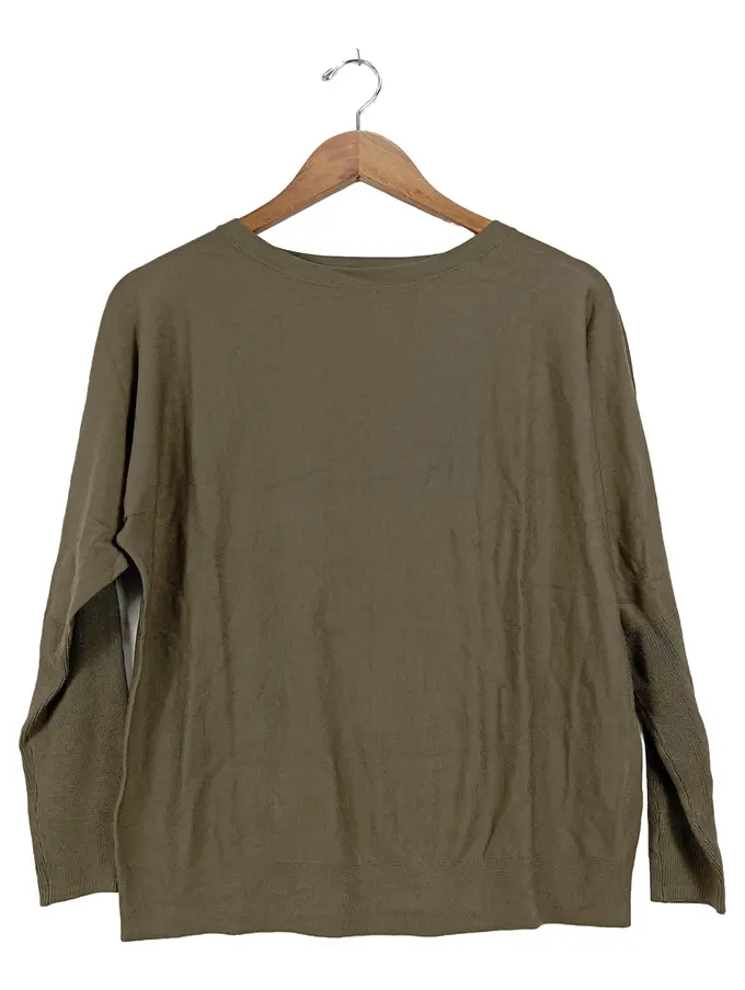 Damen Pullover Gr. 36/S Oliv Viskose Casual Langarm
