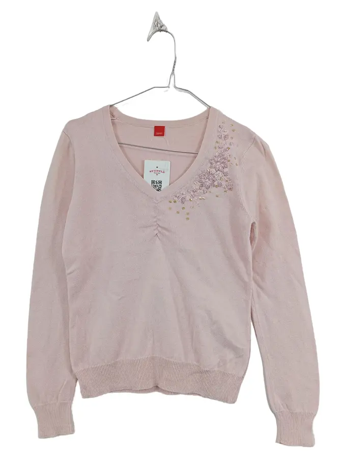 Damen Pullover Gr. 36 S Rosa V-Ausschnitt Baumwolle Kaschmir Stickerei