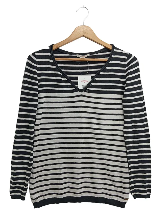 Damen Pullover Gr. 36/S Schwarz Gestreift Klassisch Langarm