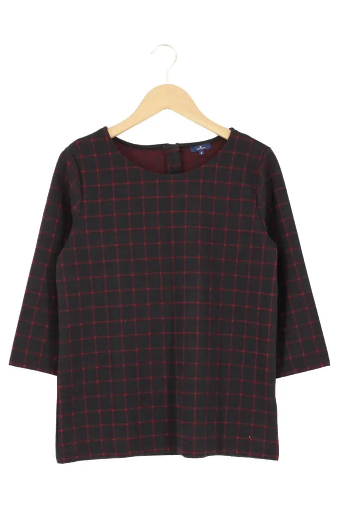 Damen Pullover Gr. 36/S Schwarz Kariert Casual 3/4-Arm
