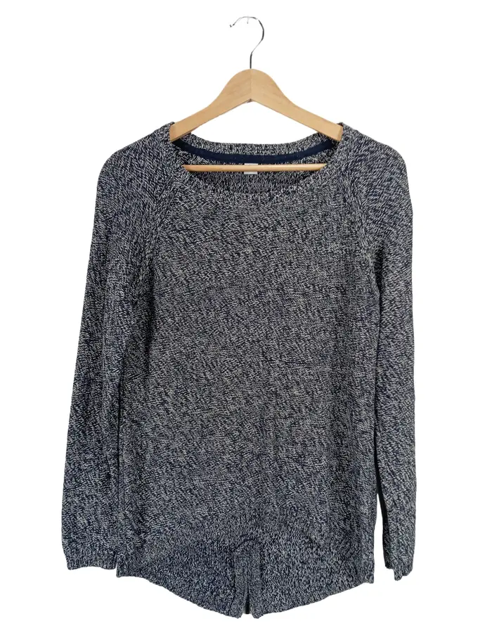 Damen Pullover Gr. 38/M Grau Meliert Baumwolle Langarm