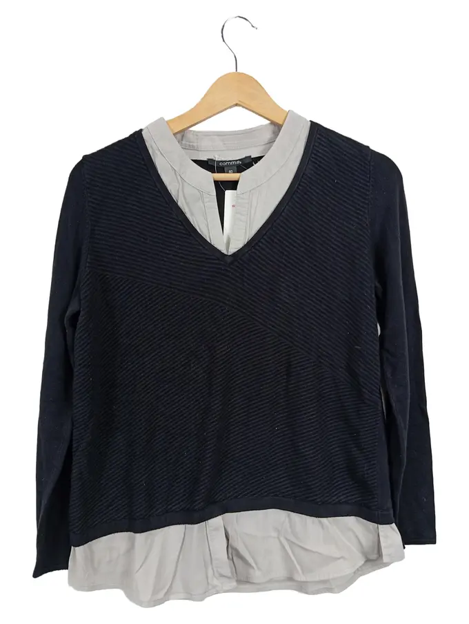Damen Pullover Gr. 40;L Schwarz Hemdblusen-Look Langarm