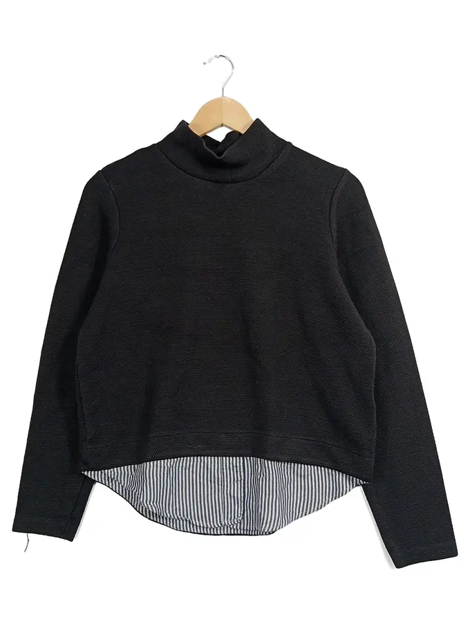 Damen Pullover Gr. 40/L Schwarz Modern mit Hemd-Einsatz