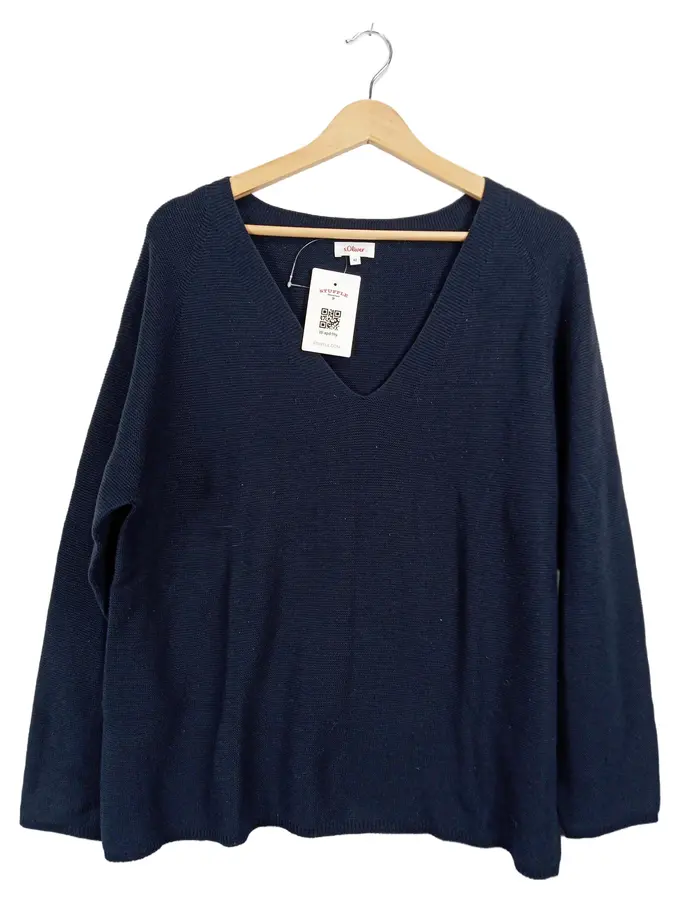 Damen Pullover Gr. 42 Blau V-Ausschnitt Strick Basic Casual Langarm