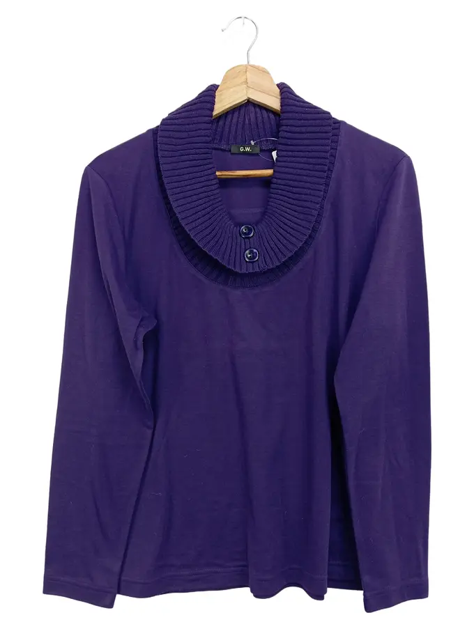 Damen Pullover Gr. 42/XL Lila Klassisch Elegant Langarm