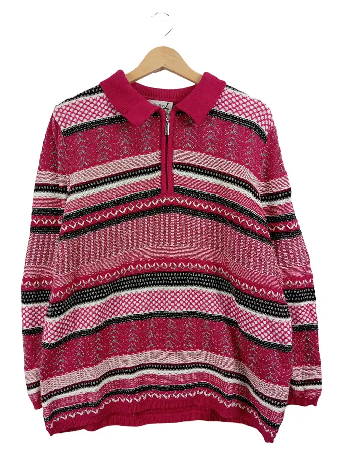Damen Pullover Gr. 46 Pink Retro Strick Halbzip Norweger