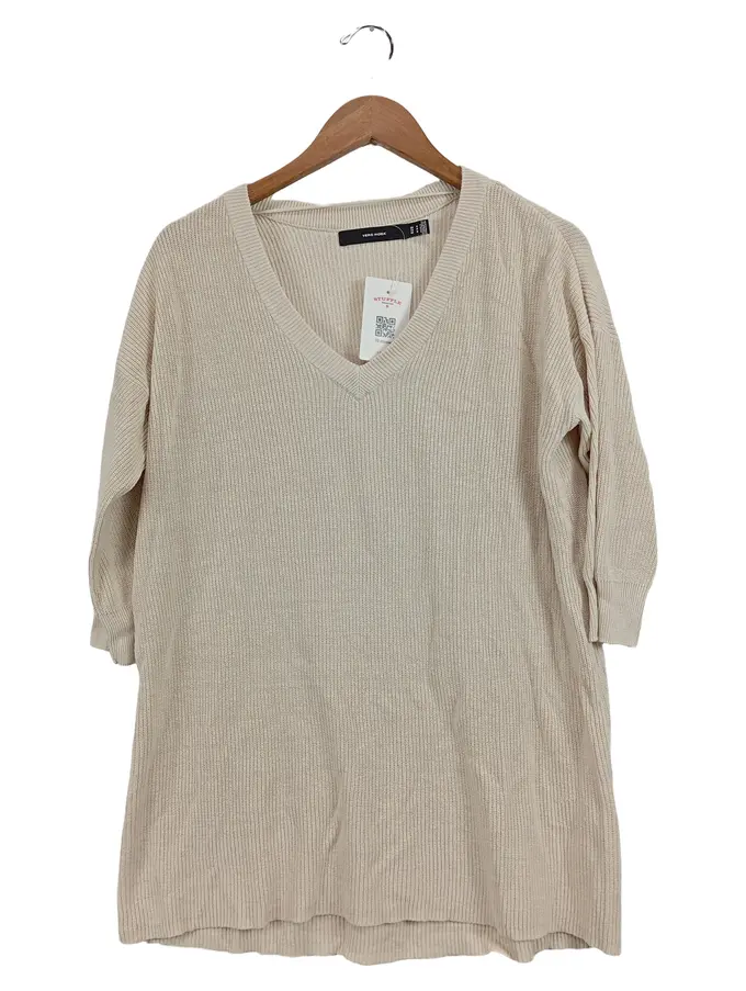Damen Pullover Gr. M Beige V-Ausschnitt Strick Casual