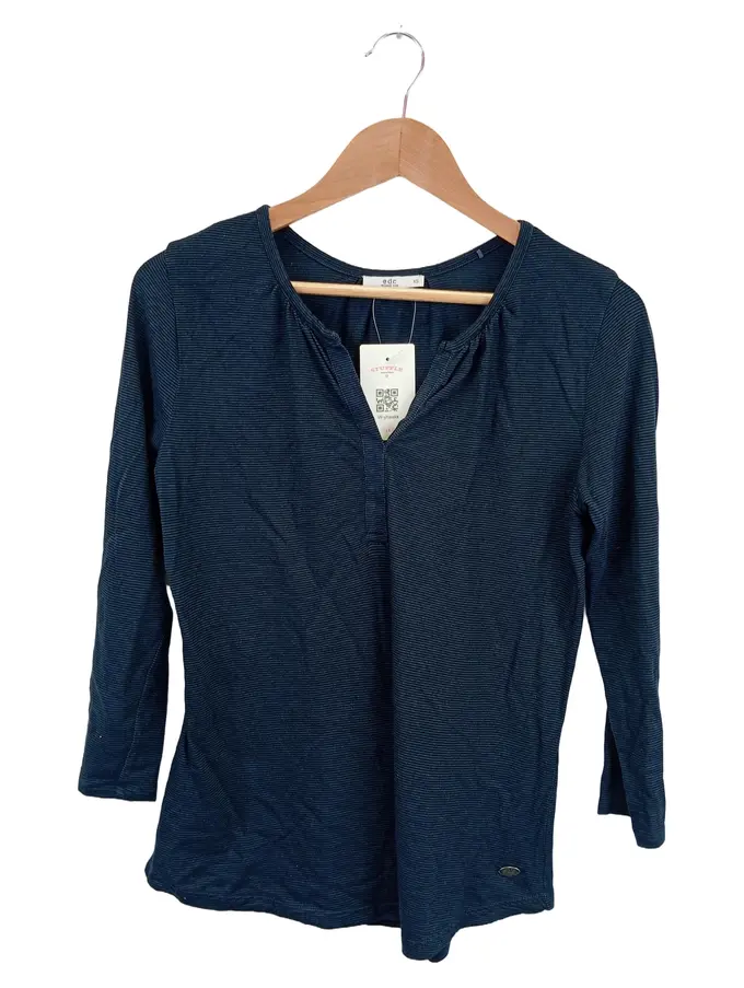 Damen Pullover Gr. XS 32 Blau Gestreift 3/4 Arm Baumwolle Casual