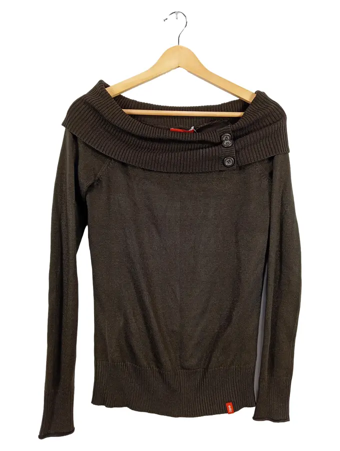 Damen Pullover Gr. XS/34 Oliv Schulterfrei Langarm