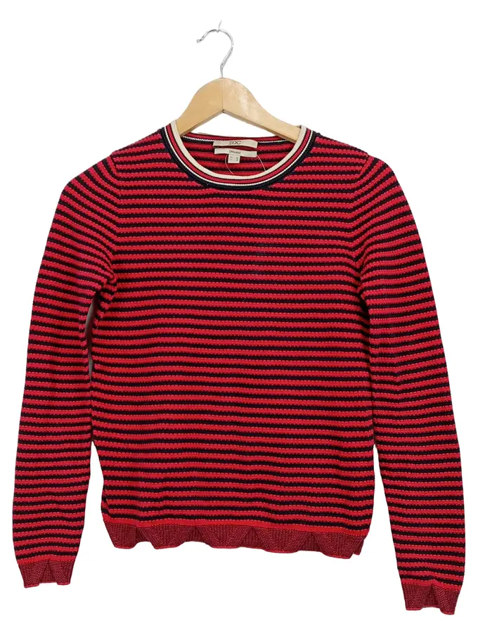 Damen Pullover Gr. XS Rot Schwarz Gestreift Bio-Baumwolle