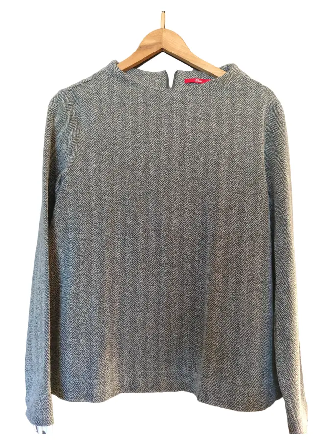 Damen Pullover Grau Fischgrätenmuster Gr. 42 XL Langarm