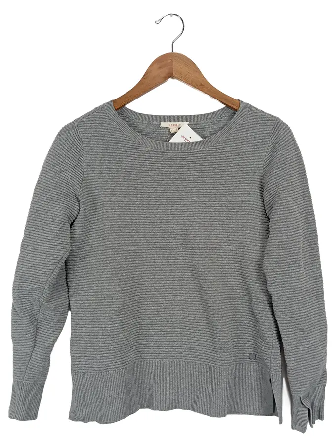Damen Pullover Grau Gr. S Casual Strukturmuster Langarm