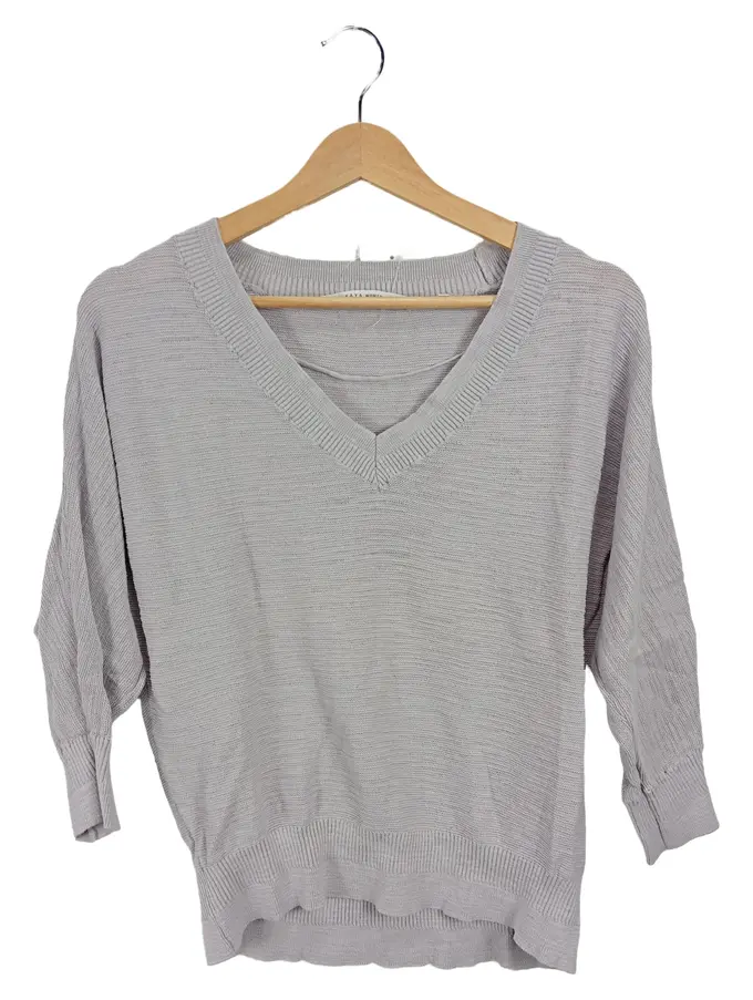 Damen Pullover Grau L Casual 3/4-Arm V-Ausschnitt