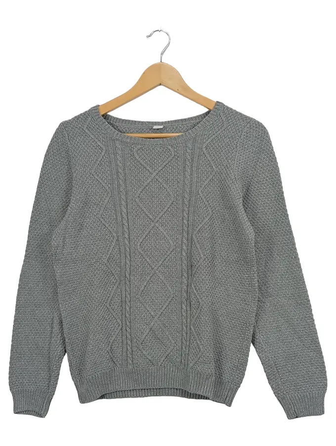 Damen Pullover Grau M Baumwolle Zopfstrick Langarm Freizeit