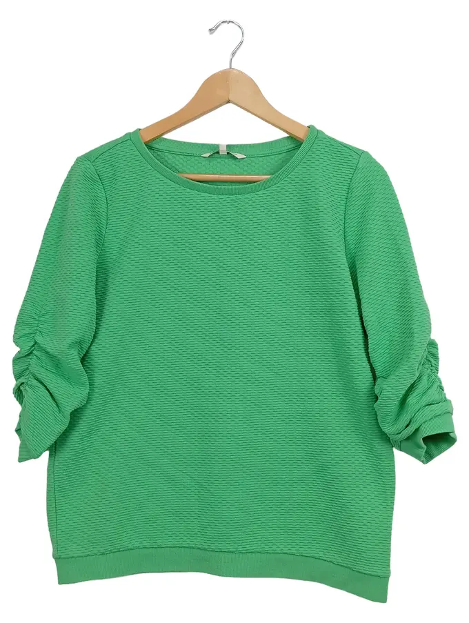 Damen Pullover Grün L Strukturmuster 3/4-Arm Freizeit