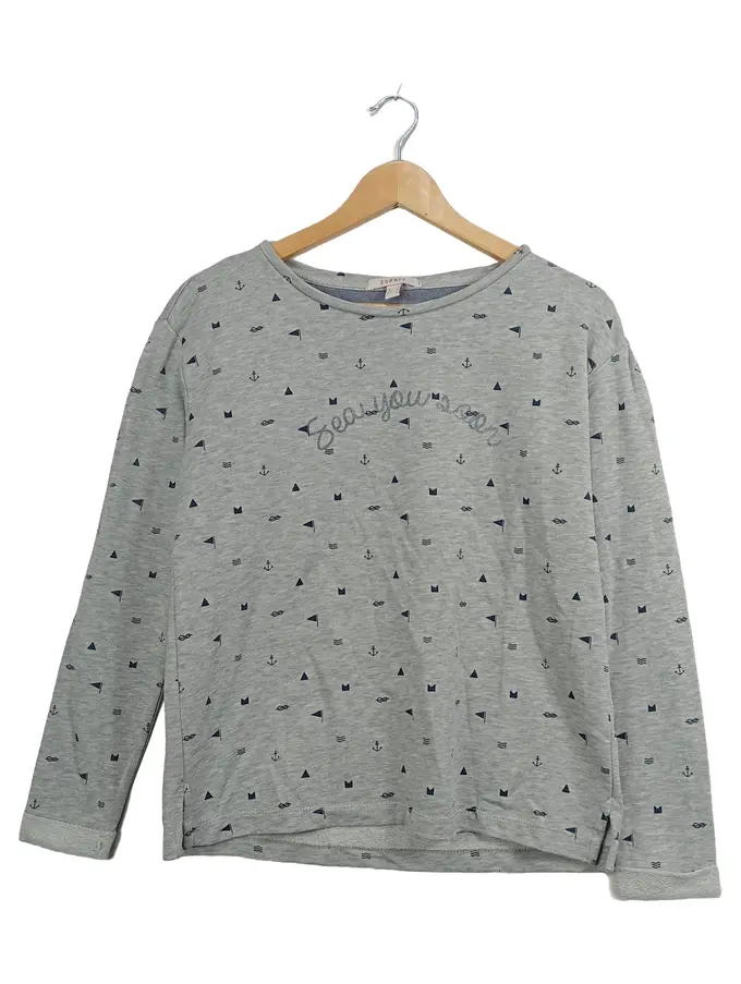 Damen Pullover Langarm Maritim Schriftzug Grau Gr. S