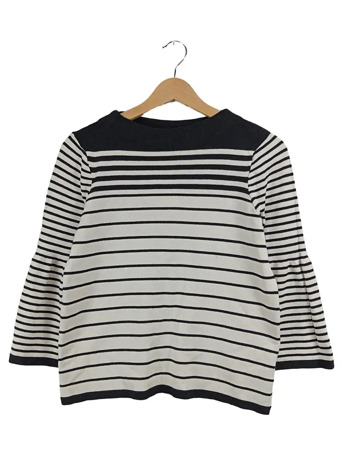 Damen Pullover Langarm Streifen Maritim Gr. M Weiß Schwarz