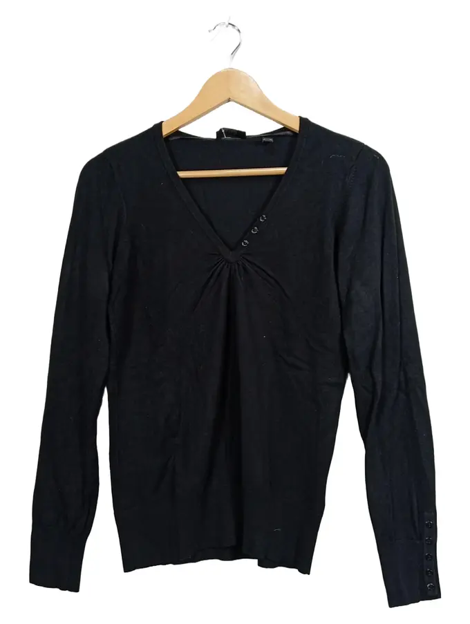 Damen Pullover Langarm V-Ausschnitt Schwarz Gr. M 38