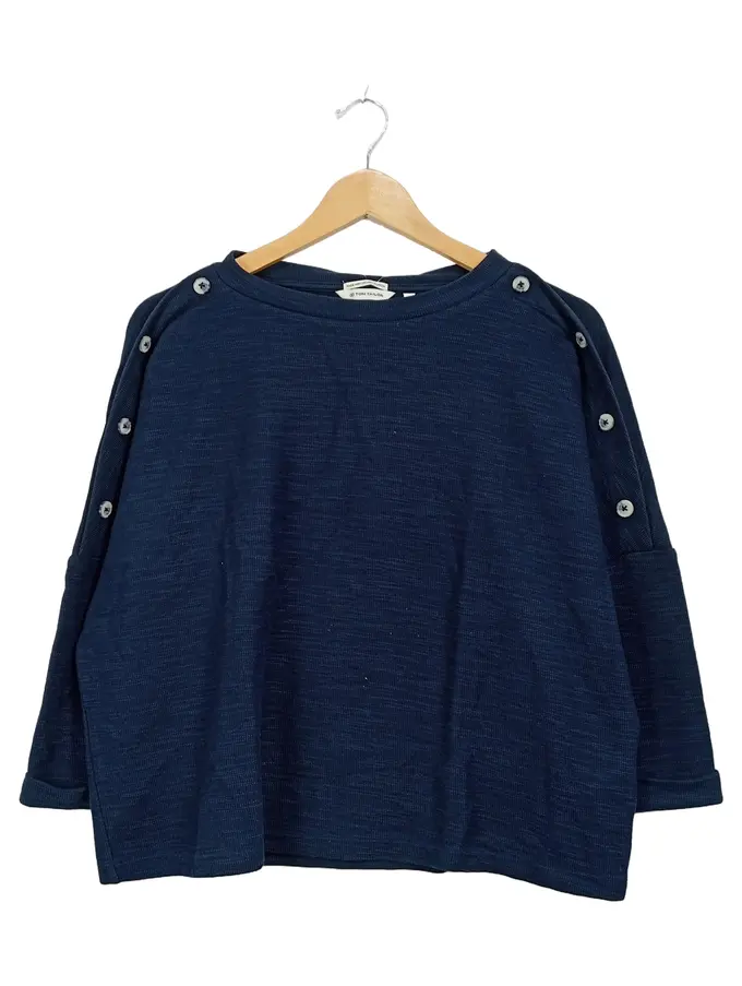 Damen Pullover Langarm Zierknöpfe Blau Gr. M Bio-Baumwolle