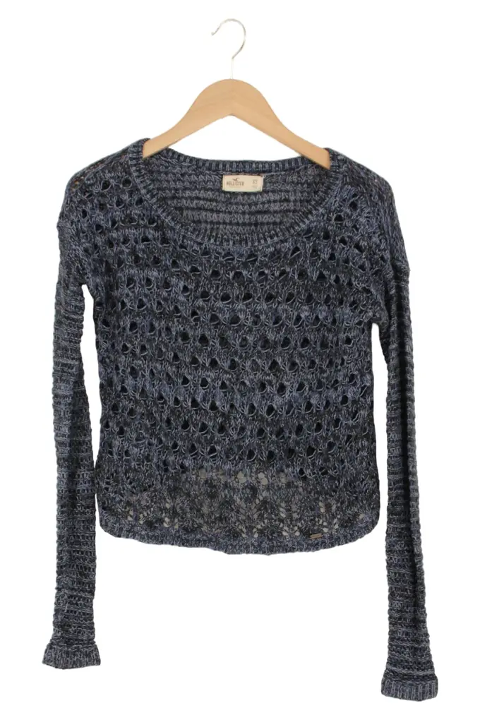 Damen Pullover Lochmuster Casual Blau Gr. 34/XS Strickpullover