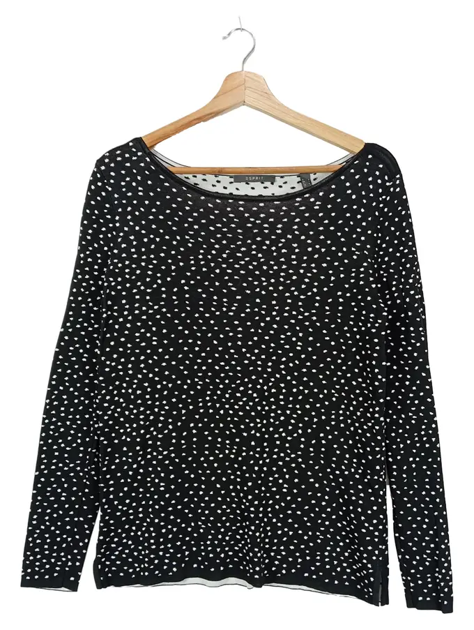 Damen Pullover Punkte Langarm Viskose Schwarz Gr. 36/S