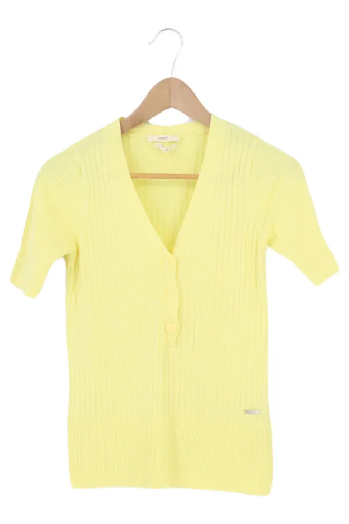 Damen Pullover Rippstrick Kurzarm Gelb Gr. 36;S Klassisch
