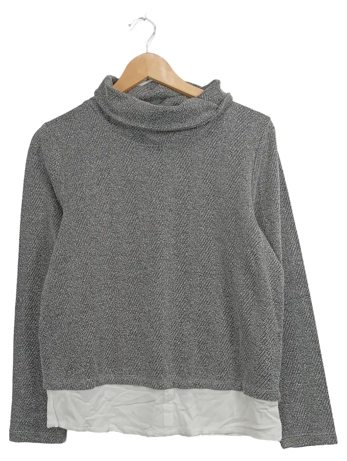 Damen Pullover Rollkragen Fischgrätenmuster Grau Gr. 38/M