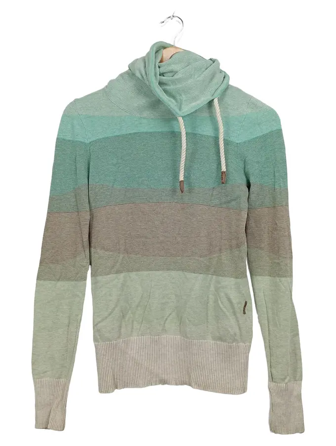 Damen Pullover Rollkragen Gr. S Grün Gestreift Baumwolle