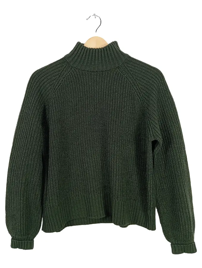 Damen Pullover Rollkragen Rippstrick Grün Gr. 34/XS