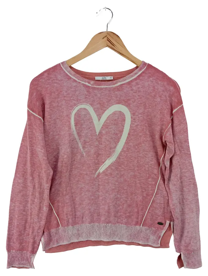 Damen Pullover Rosa Herz Gr. 34/XS Casual Langarm