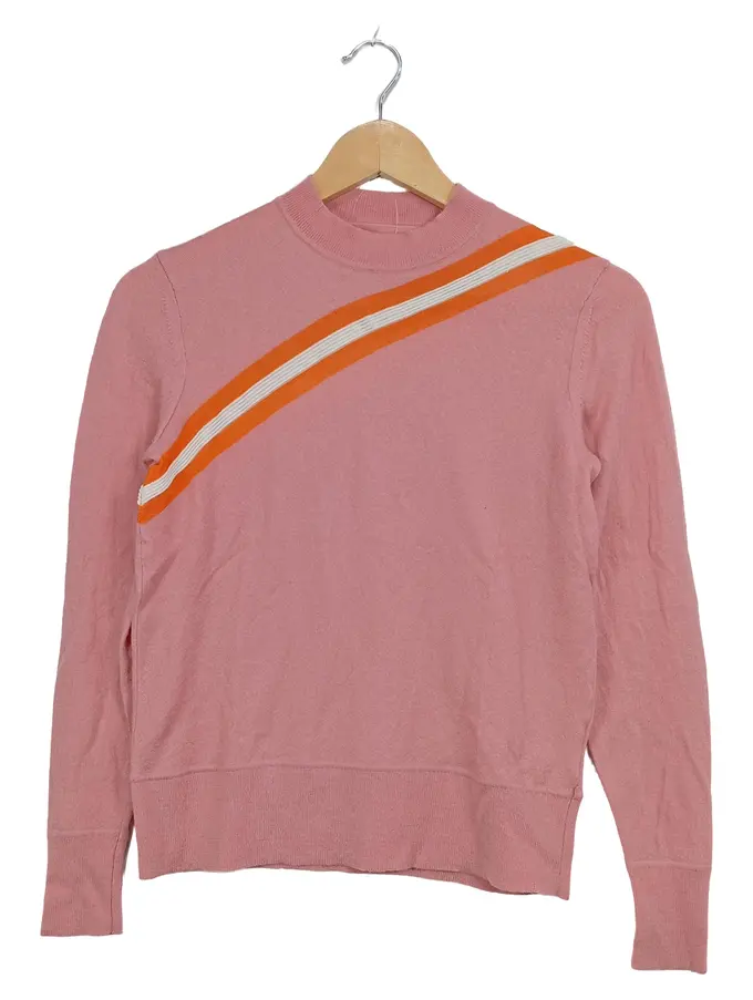 Damen Pullover Rosa Retro Streifen Orange Weiß Gr. XS