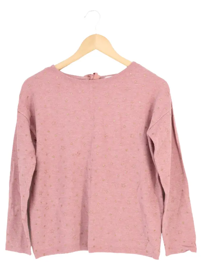 Damen Pullover Rosa Sterne Langarm Gr. 36/S Freizeit Viskose