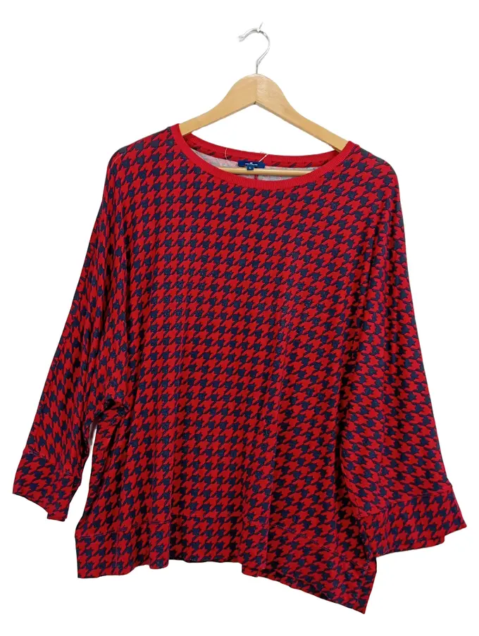 Damen Pullover Rot Blau Hahnentritt Muster Oversized Gr. 40;L