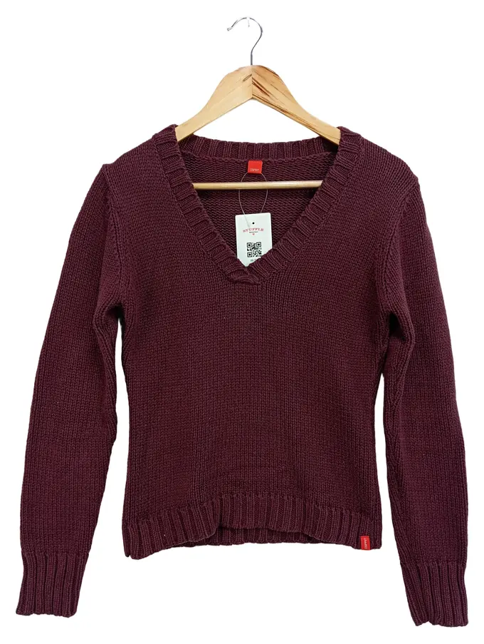 Damen Pullover Rot Gr. 36/S V-Ausschnitt Strick Casual Elegant