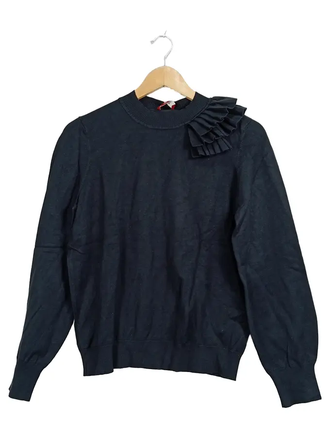 Damen Pullover Schwarz Rüschenkragen Gr. M Langarm Feminin