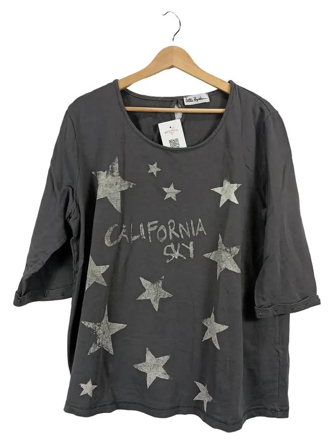 Damen Pullover Sterne Schriftzug Grau 46 3XL 3/4 Arm Baumwolle