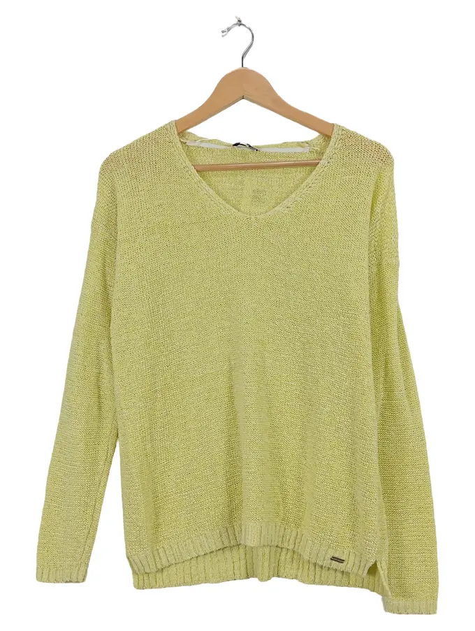 Damen Pullover Strickpullover Gelb Gr. L V-Ausschnitt